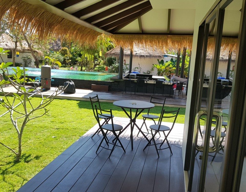 Poolside Bungalow booking includes daily housekeeping, complimentary water and hot drinks, stable WiFi internet, electricity costs and free transfer from the airport.
